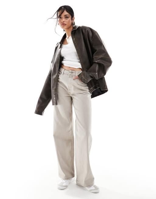 ASOS DESIGN wide leg dad jeans in neutral
