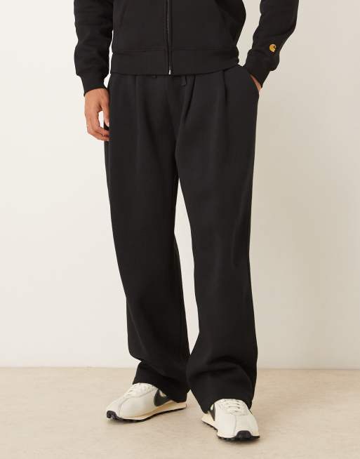 ASOS DESIGN wide leg jogger with pleats in black