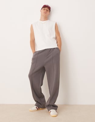 ASOS DESIGN wide leg pin tuck jogger in volcanic glass