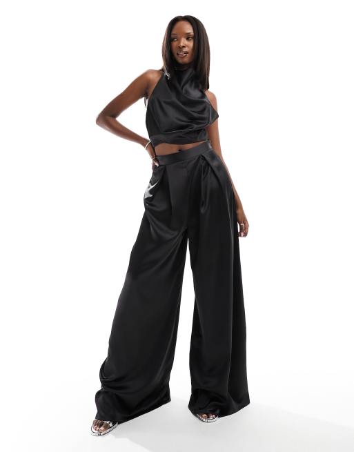 ASOS DESIGN wide leg satin trouser co-ord in black