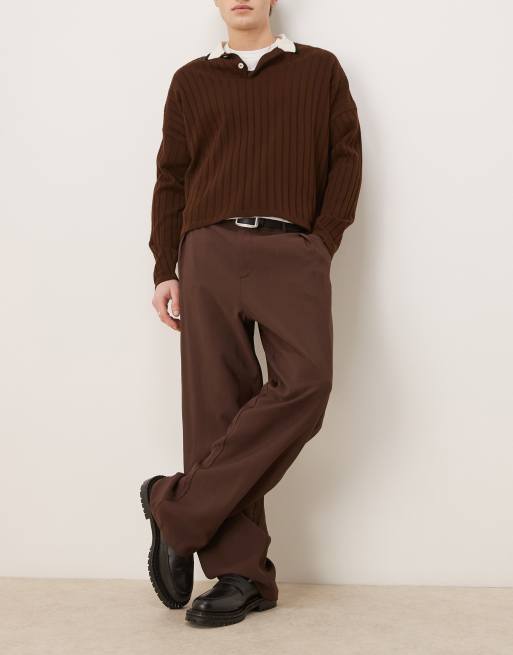ASOS DESIGN wide leg smart trousers with pleats in brown