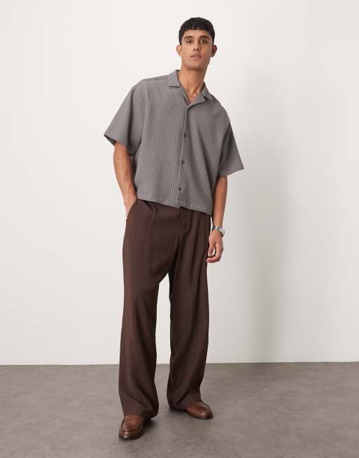 ASOS DESIGN wide leg smart trousers with pleats in brown
