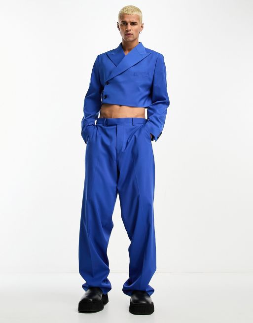ASOS DESIGN wide leg suit trouser in cobalt blue