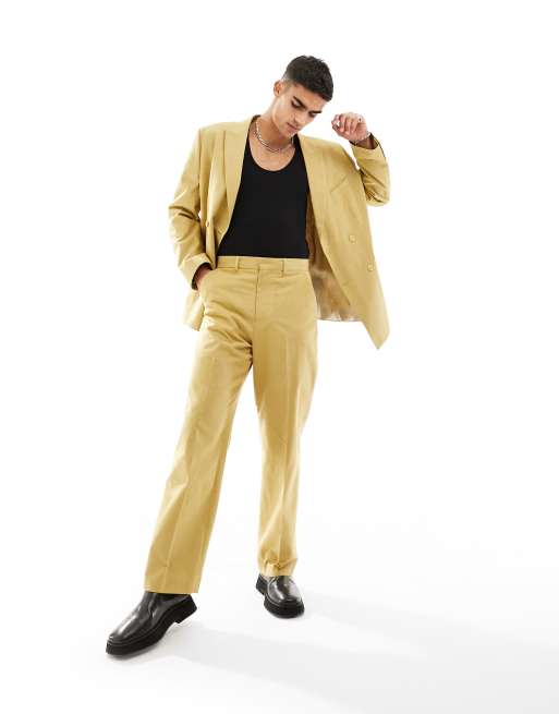 ASOS DESIGN wide leg suit trouser in slubby texture in stone