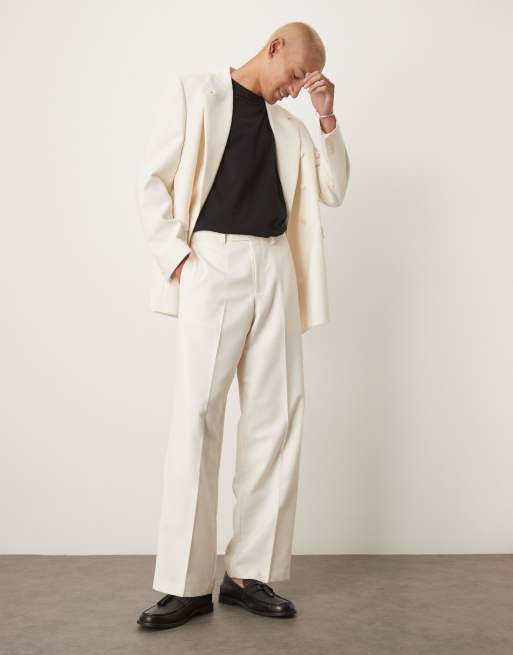 ASOS DESIGN wide leg suit trousers in cream texture