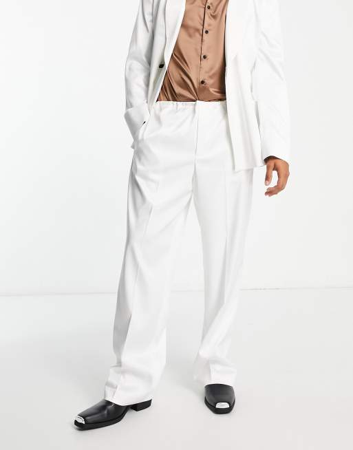 ASOS DESIGN wide leg suit trousers in white satin