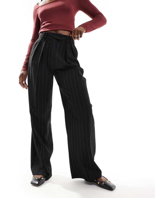 ASOS DESIGN wide leg tailored trouser in black stripe