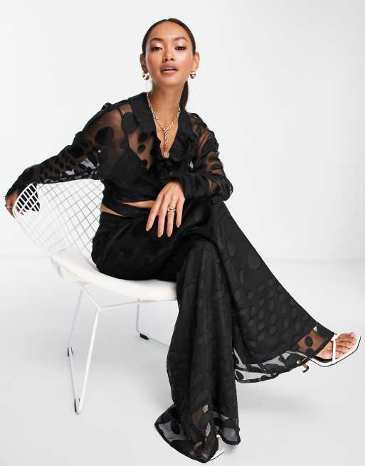 ASOS DESIGN wide leg trouser in satin jacquard spot co-ord