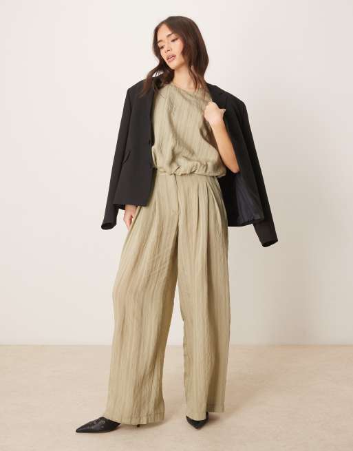 ASOS DESIGN wide leg trousers co-ord in green tonal stripe