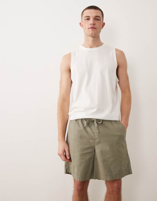 ASOS DESIGN wide linen blend shorts in mid length in khaki