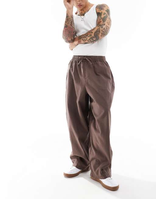 ASOS DESIGN wide parachute linen trouser in washed brown with elasticated waist