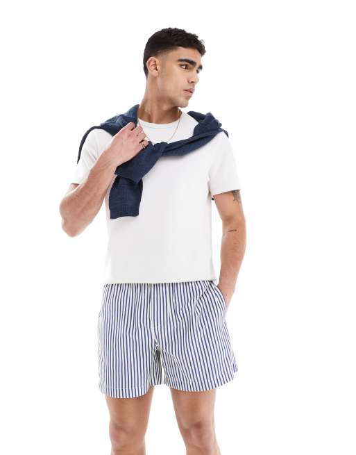 ASOS DESIGN wide shorter length short in blue and white stripe