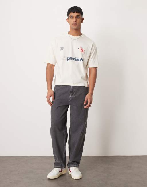 ASOS DESIGN wide skater jeans with contrast stitch in grey