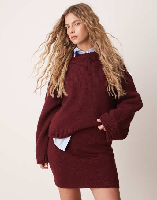 ASOS DESIGN wide sleeve oversized jumper co-ord in burgundy
