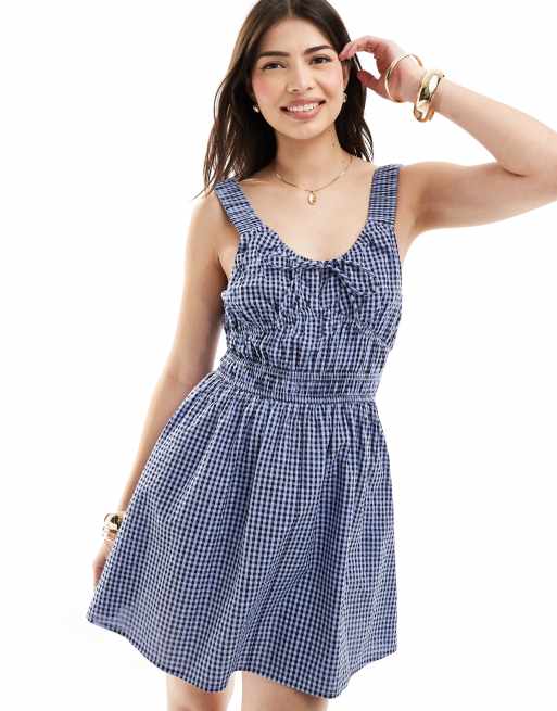ASOS DESIGN wide strap channel waist mini sundress in blue gingham