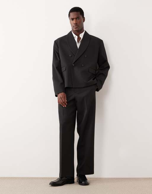 ASOS DESIGN wide suit trousers in black jacquard