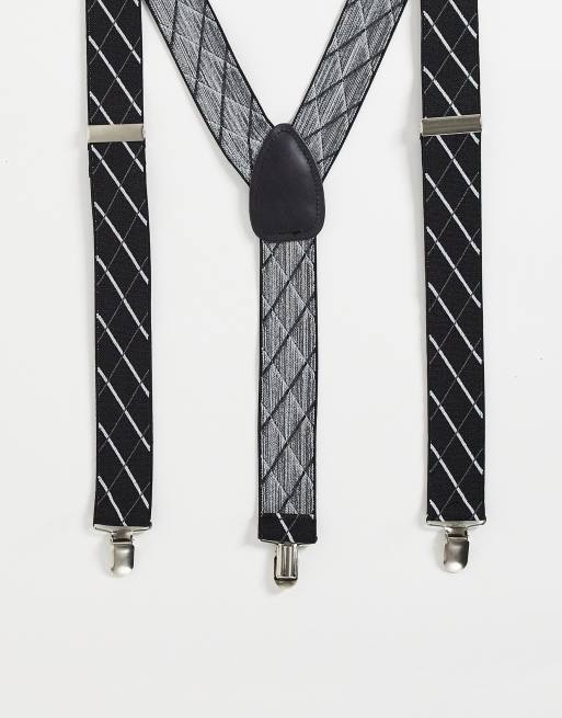 ASOS DESIGN wide wedding braces in black and white check