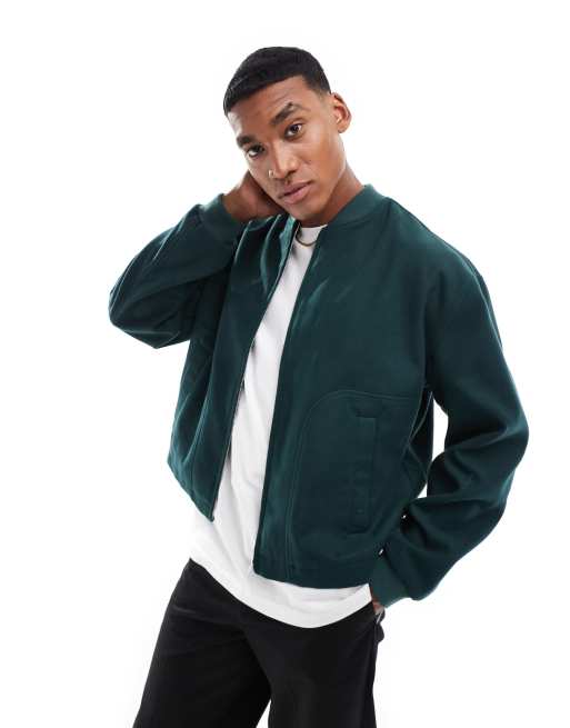 ASOS DESIGN wool look bomber jacket with drawcord in green