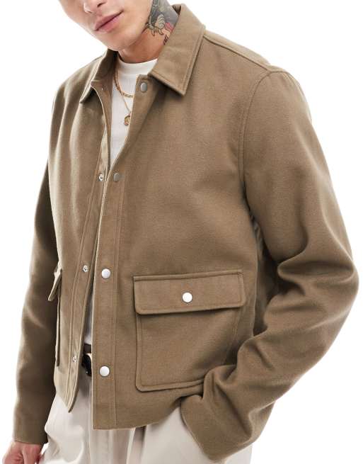 ASOS DESIGN wool look cropped harrington jacket in tan