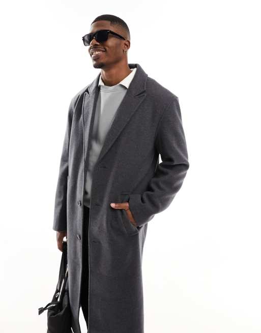 ASOS DESIGN wool look overcoat in dark grey