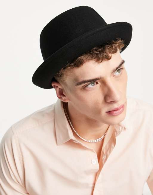 ASOS DESIGN wool pork pie hat with size adjuster in black