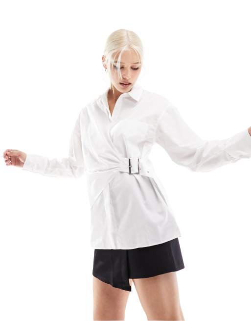 ASOS DESIGN wrap detail shirt with utility belt in white