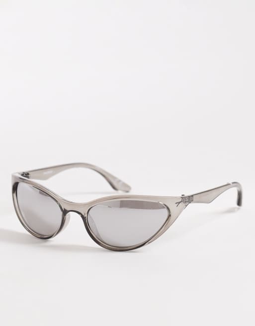 ASOS DESIGN wrap sunglasses in grey crystal frame with mirrored lens