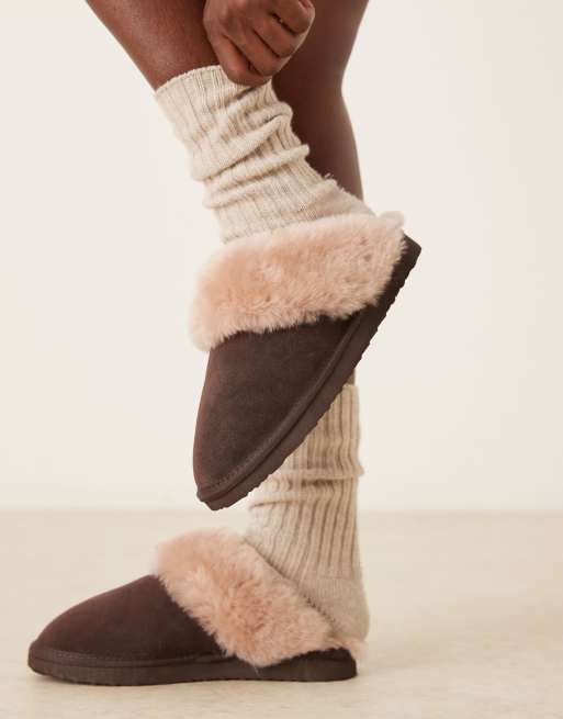ASOS DESIGN Zamber premium sheepskin slippers in chocolate suede