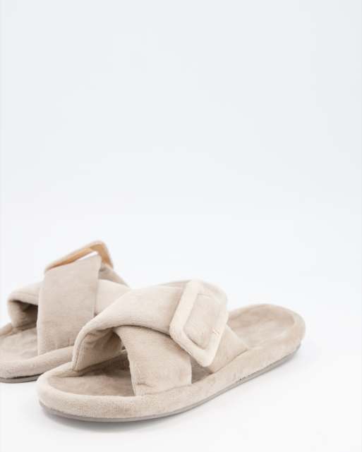 ASOS DESIGN Zine fur slider slippers with buckle in mink