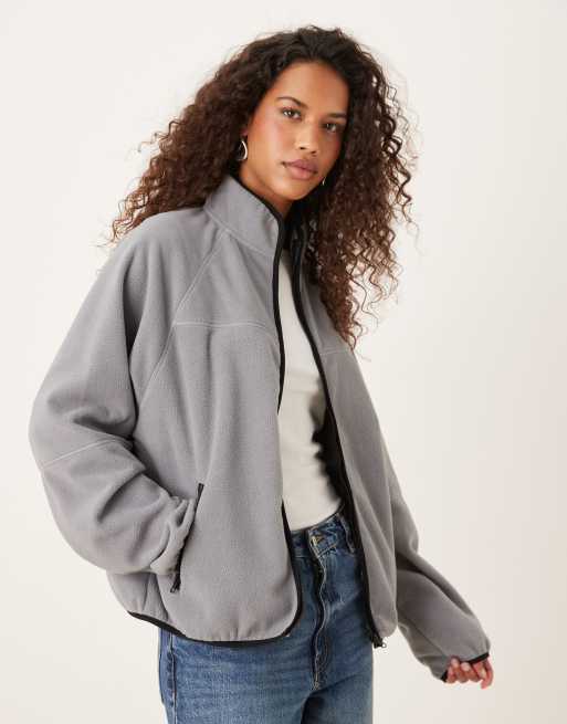 ASOS DESIGN zip through fleece in charcoal with black binding