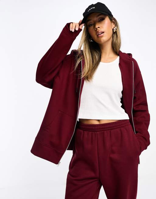 ASOS DESIGN zip through hoodie in maroon