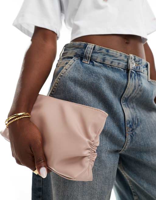 ASOS DESIGN zip top clutch with ruched side detail in blush