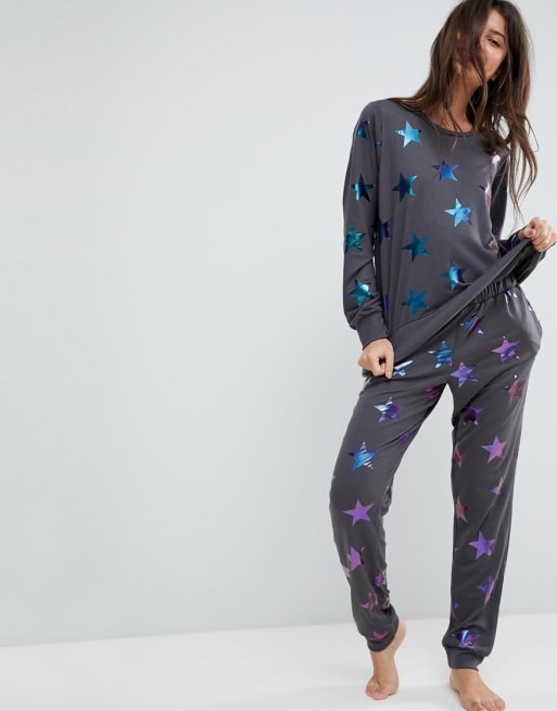 ASOS LOUNGE Holographic Star Print Sweat & Jogger Set