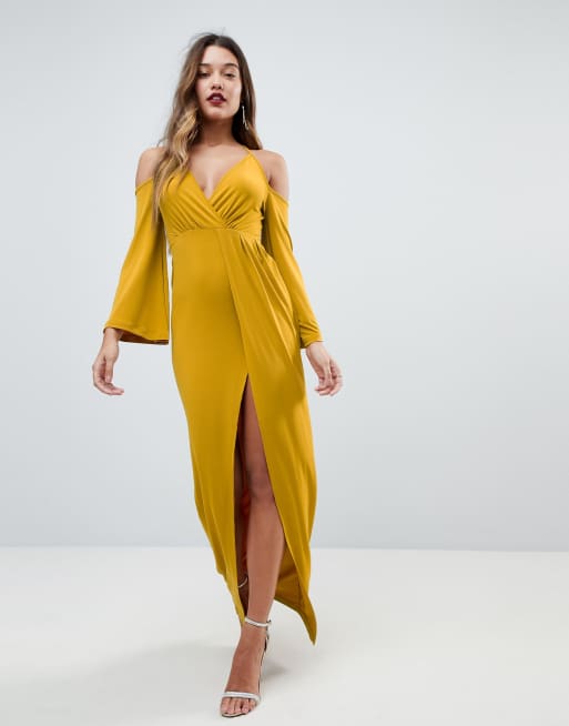 ASOS Slinky Deep Plunge Cold Shoulder Kimono Maxi Dress