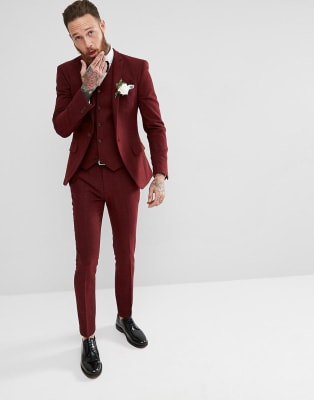 ASOS Wedding Super Skinny Suit in Wine Herringbone