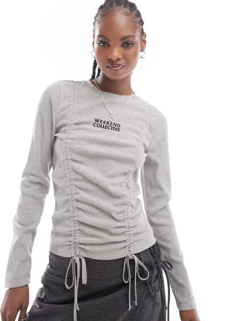 ASOS Weekend Collective long sleeve ruched top in grey marl