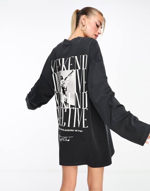 ASOS Weekend Collective photographic print long sleeve T-shirt dress