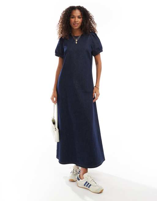 ASOSD DESIGN denim puff sleeve midi dress in indigo