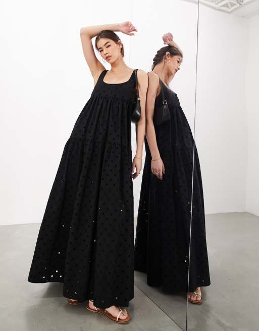 ASOS EDITION broderie super full scoop neck tiered maxi dress in black