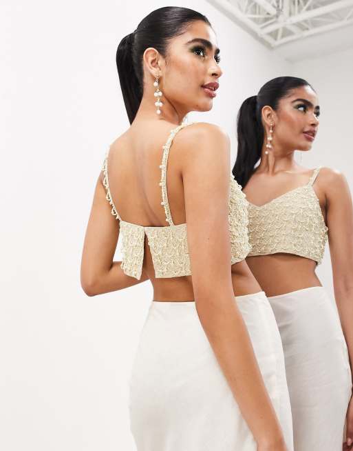 ASOS EDITION cami v neck embellished pearl crop top in cream