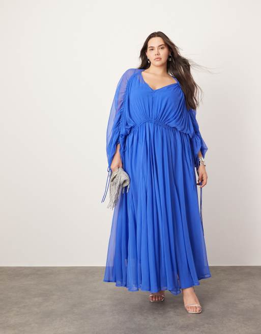 ASOS EDITION Curve extreme chiffon gathered waist maxi dress in cobalt blue
