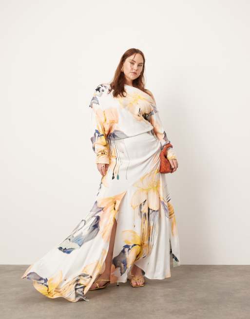 ASOS EDITION Curve fallen shoulder maxi dress in blurred floral print