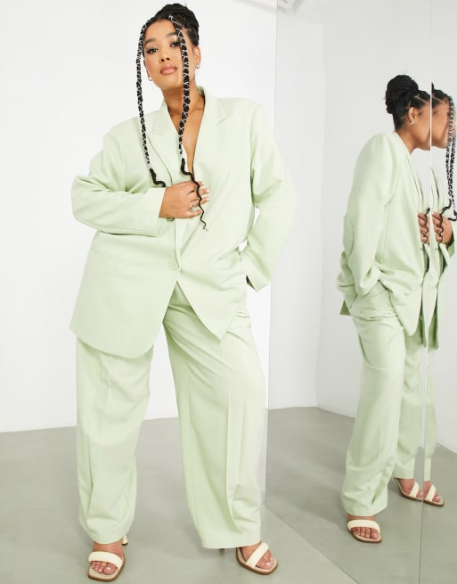 ASOS EDITION Curve oversized blazer & wide leg trouser in sage green - LGREEN
