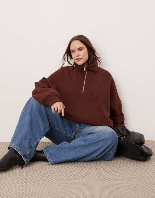 ASOS EDITION Curve premium heavy weight half zip oversized sweatshirt in chocolate