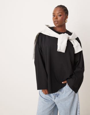 ASOS EDITION Curve premium heavyweight cotton oversized long sleeve t-shirt in black