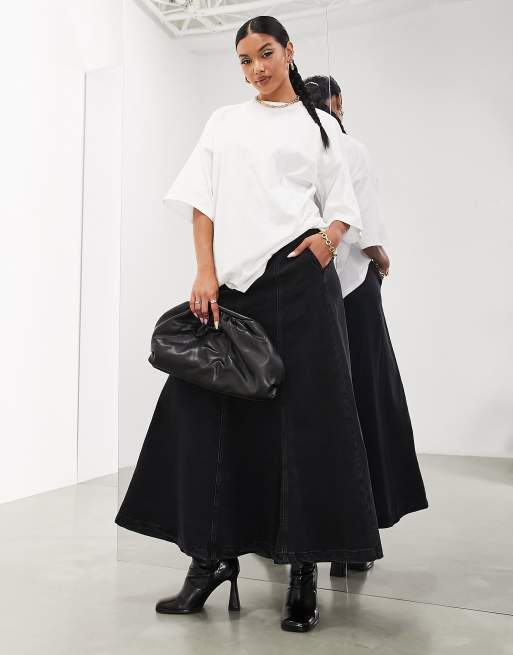 ASOS EDITION denim a-line maxi skirt in washed black