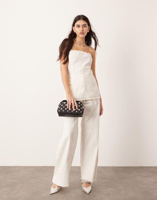 ASOS EDITION denim seam detail bandeau and wide leg jean co-ord with raw edge in