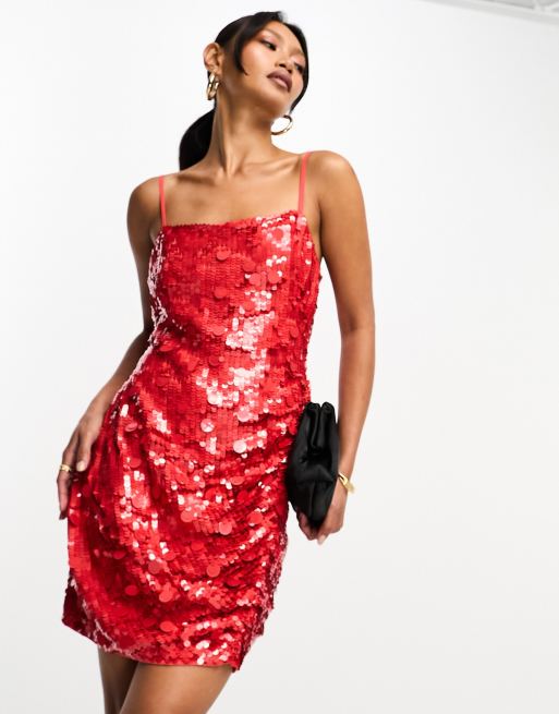 ASOS EDITION drape side sequin cami mini dress in red