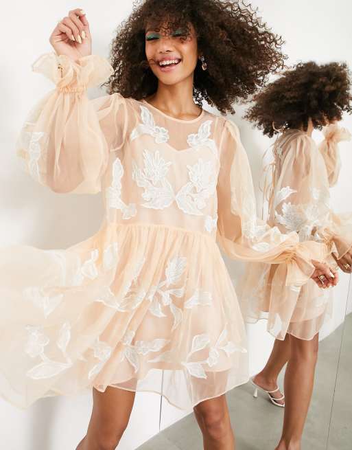 ASOS EDITION embroidered organza mini smock dress in pink
