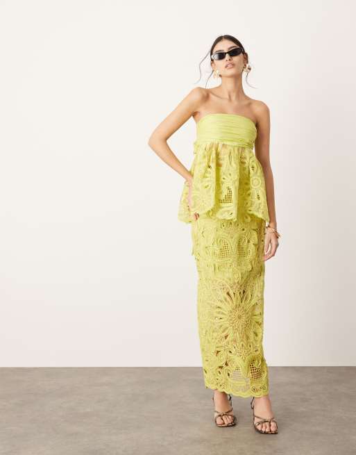 ASOS EDITION floral cornelli column midi skirt co-ord in lime